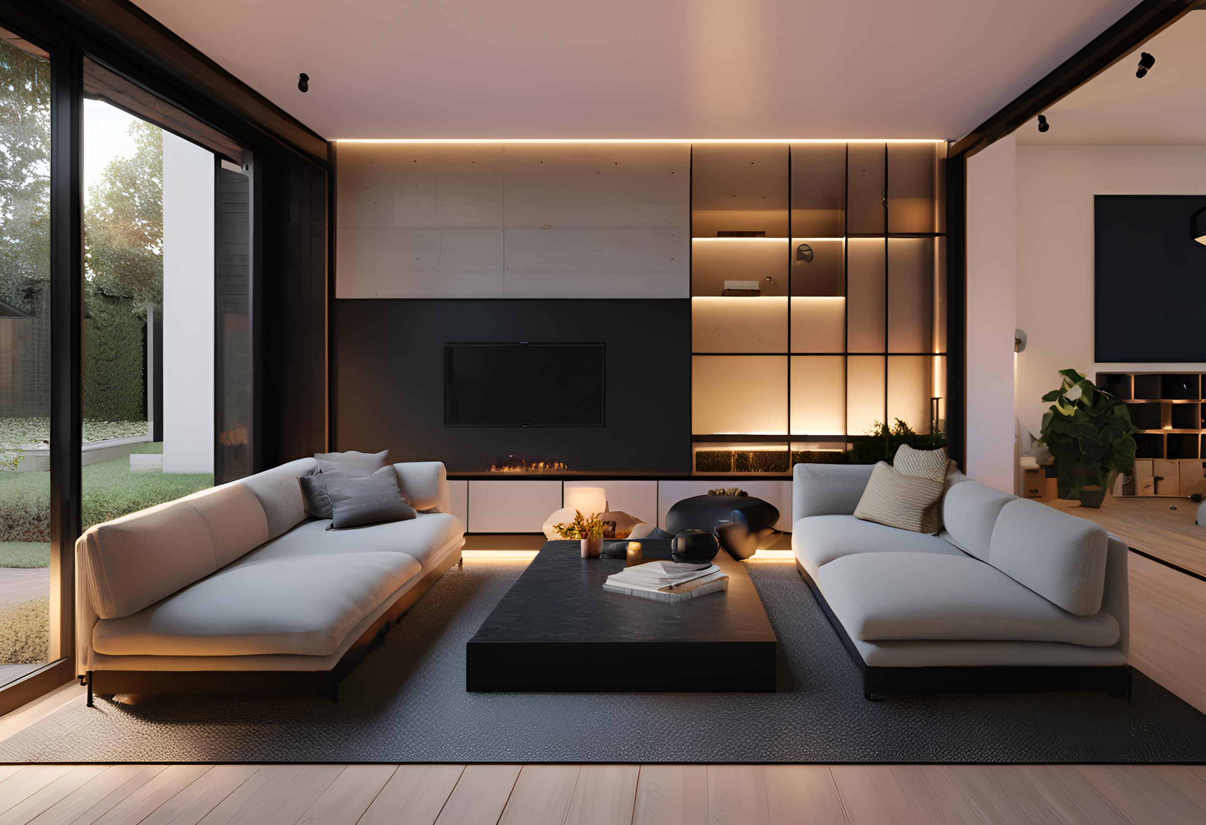 La sala de estar, es el corazón cálido de la casa, los pisos de madera aportan una sensación de confort, mientras los detalles en blanco y negro contrastan de manera sofisticada. Grandes ventanales y paneles de vidrio permiten que la luz natural se filtre durante todo el día, generando una atmósfera envolvente.