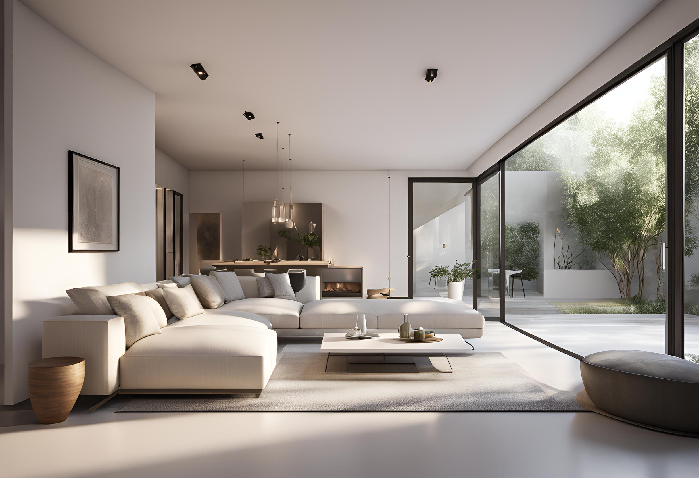La casa, minimalista, como un espacio donde la simplicidad fuera el centro de la vida familiar. Los tonos neutros de las paredes, en blanco y gris suave, reflejan la luz natural que entra a través de los amplios ventanales, inundando el espacio de una luminosidad serena. No hay distracciones, solo líneas limpias y superficies lisas que invitan a la calma.
