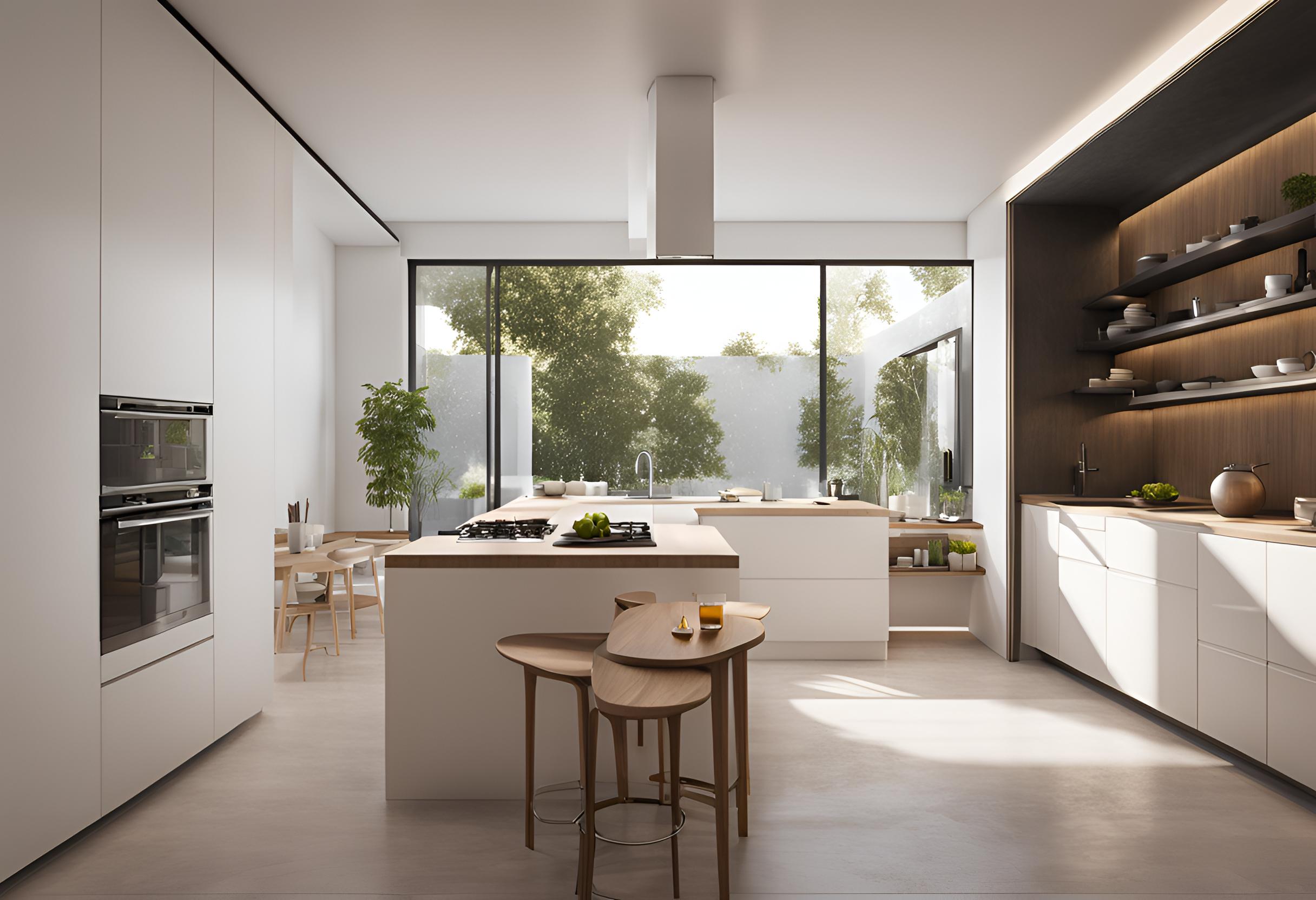 El núcleo de la vida familiar, un espacio amplio donde se mezclan aromas y conversaciones. Con superficies lisas y modernas en tonos tranquilos y con un gran ventanal, marcan la luz del sol, mientras los electrodomésticos están integrados de forma sutil para mantener la armonía visual. La isla central es un lugar de encuentro, ideal para que la familia se reúna en las horas de comida.