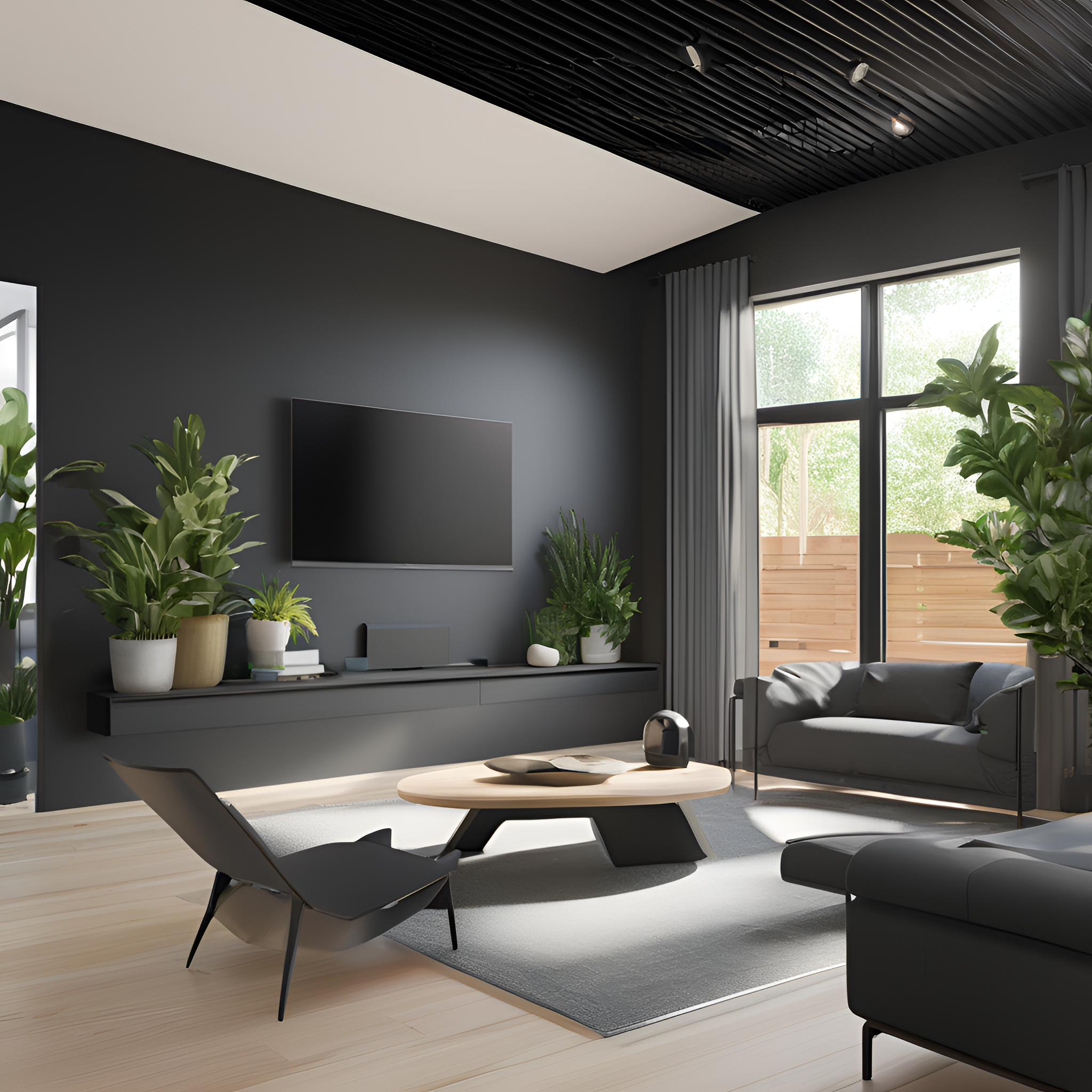 En un refugio íntimo y sereno, los tonos blancos y negros se suavizan con los pisos de madera, creando un ambiente equilibrado. Las líneas simples del mobiliario y la disposición abierta permiten que el espacio se sienta ligero y relajante.